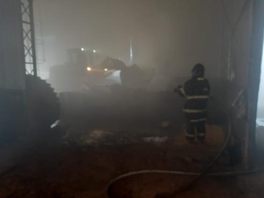 Segundo o Corpo de Bombeiros, dois silos localizados em um barracão pegaram fogo.