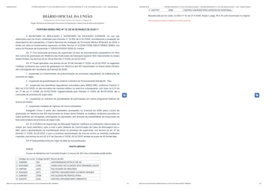 Conforme publicado no Diário Oficial da União hoje (Edição nº 52, Seção 1, Pág. 46), o próprio MEC reconheceu o erro material e republicou a Portaria (agora sob nº 72*). A FAI NÃO CONSTA NA LISTA DE INSTITUIÇÕES SOB SUPERVISÃO. A exclusão do nome da FAI confirma que a menção anterior foi um equívoco do órgão federal.