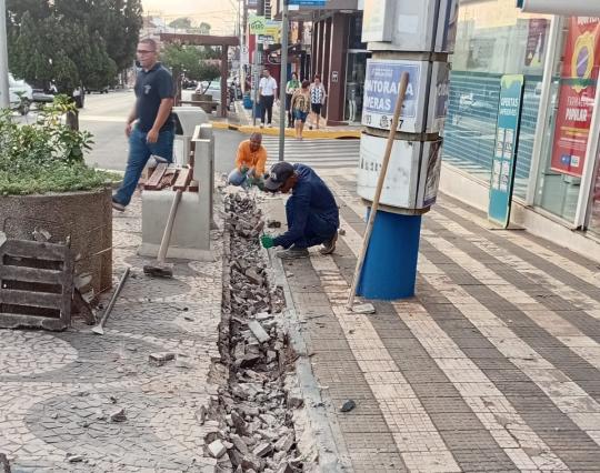 A obra vai substituir todas as grelhas perfuradas por placas de concreto, desde que pedestres relataram cair nos buracos abertos pelas grelhas antigas, sem manutenção.