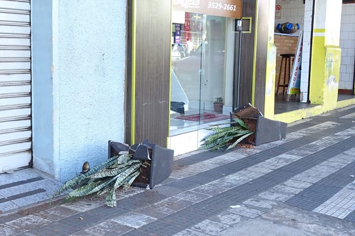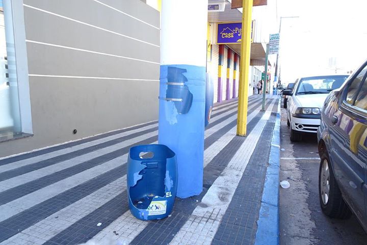Internautas postaram em redes sociais fotos e comentários sobre destruíção de lixeiras, vasos de plantas e outros ornamentos na avenida Brasil.