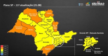 Os 44 municípios vinculados ao Departamento Regional de Saúde (DRS) de Presidente Prudente continuam na fase laranja, enquanto que os 12 municípios da Nova Alta Paulista vinculados ao DRS de Marília regrediram da etapa amarela para a laranja.