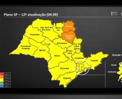 Com exceção das regiões de saúde de Ribeirão Preto e Franca, todas as demais regiões paulistas estão classificadas na fase AMARELA.