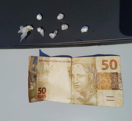 Uma vez acompanhados e abordados, a PM localizou com um dos suspeitos que tentou comprar a droga a importância de R$45,10. Com o outro indivíduo, que fazia a venda (este maior de idade) foram localizados R$ 50 em dinheiro e um invólucro com sete pedras de crack.