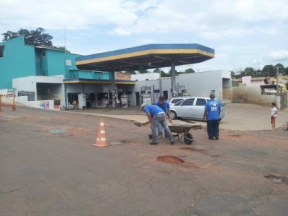 Funcionários do posto colocaram cimento em buracos próximo ao estabelecimento