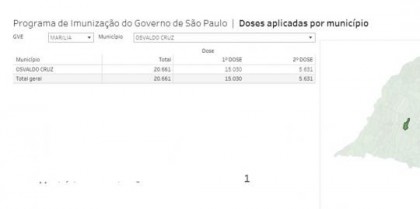 De acordo com dados do vacinômetro do Estado, já foram aplicadas em Osvaldo Cruz 20.661 doses da vacina, sendo 15.030 em primeira dose e 5.631 em segunda.