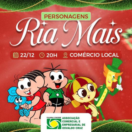 OSVALDO CRUZ - A noite desta segunda-feira promete ser mágica para as famílias de Osvaldo Cruz. Por iniciativa da Associação Comercial e Empresarial, os queridos personagens da Turma da Mônica desembarcam na cidade para uma ação especial de entretenimento e incentivo ao comércio local.