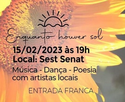O Conselho Comunitário de Segurança de Osvaldo Cruz, o Conseg, em parceria com a Prefeitura da cidade, através da Secretaria Municipal de Cultura, Esportes e Turismo, realiza amanhã na sede do Sest-Senat o evento "Enquanto Houver Sol".