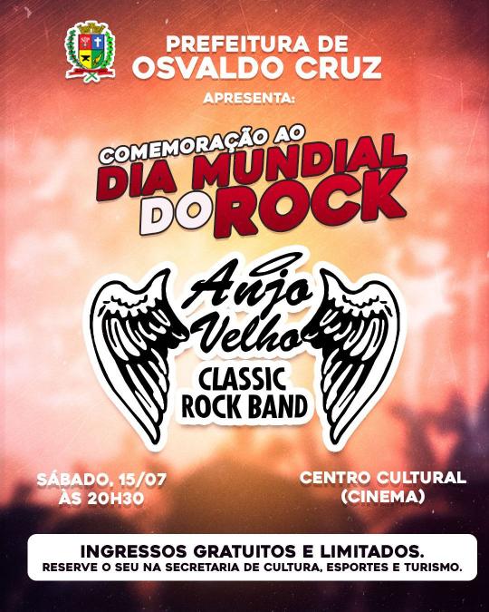 A Secretaria de Cultura, Esportes e Turismo realiza comemoração ao Dia Mundial do Rock no sábado, 15/07.