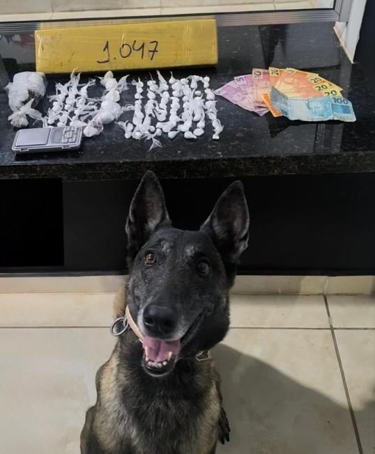 Os agentes foram até o local informado e, com o apoio do canil, encontraram mais 74 porções de cocaína já fracionadas e embaladas, além de um tijolo de maconha e objetos para preparo e pesagem.