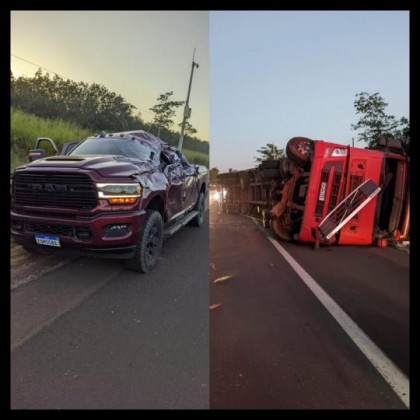 Segundo informações preliminares, o caminhão trafegava no sentido Parapuã a Tupã quando, por razões ainda desconhecidas, invadiu a pista contrária no km 564, colidindo lateralmente com a caminhonete que seguia no sentido oposto. Com o impacto, o veículo de carga tombou na via.