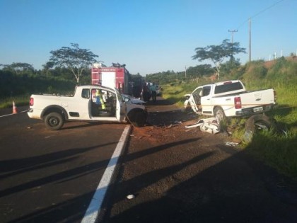 De acordo com a Polícia Militar Rodoviária, a colisão frontal entre uma caminhonete e uma picape, por motivos ainda desconhecidos, causou uma morte e deixou outras três pessoas gravemente feridas, na altura do km 19,800.