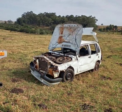 O veículo Fiat Uno saiu da pista e capotou várias vezes. Cinco pessoas que estavam no veículo ficaram feridas, sendo três em estado grave.