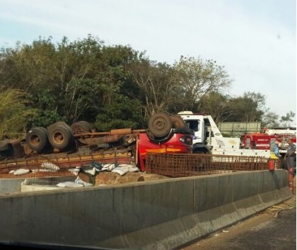 Há uma semana um caminhão carregado com cebola tombou no mesmo local.