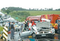 JOÃO RAMALHO- Mais um acidente ocorrido em João Ramalho. Ontem às 18:45 hs, uma colisão frontal envolveu um Saveiro de Marília. Um Corolla de Quatá e um Caminhão Furgão com placas de Presidente Prudente. A Saveiro fazia sentido Rancharia - João Ramalho,já o Caminhão e o Corolla seguiam na contramão. No local, a Saveiro colidiu de frente com outro caminhão. Rodopiando na pista, foi atingida pelo Corolla que vinha logo atrás. A Saveiro partiu ao meio. As duas pessoas que ocupavam a Saveiro foram socorridas com ferimentos considerados graves. Uma pessoa do Corolla sofreu ferimentos leves e as vítimas foram socorridas para o PS de Rancharia.