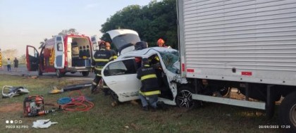 61797Acidente na SP-294 em Tupã deixa motorista preso às ferragens após colisão com caminhão