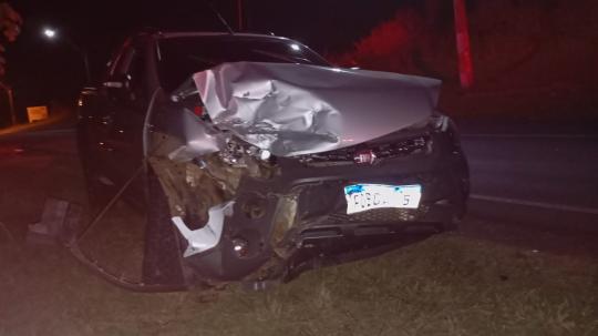 Durante a manobra, o veículo parou sobre a pista, quando Strada, que vinha no sentido contrário, bateu contra sua lateral.