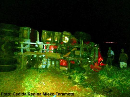 Segundo informações da Polícia Rodoviária da Base Operacional de Tupã, a carreta Scania, acoplada a semi-reboque, ambos placas de Itápolis, transitava no sentido Iacri a Rancharia. No local, por motivos a serem esclarecidos, colidiu na traseira de um veículo Saveiro, placas de Piacatu. Em seguida a carreta tombou interditando parcialmente a rodovia e a Saveiro capotou.