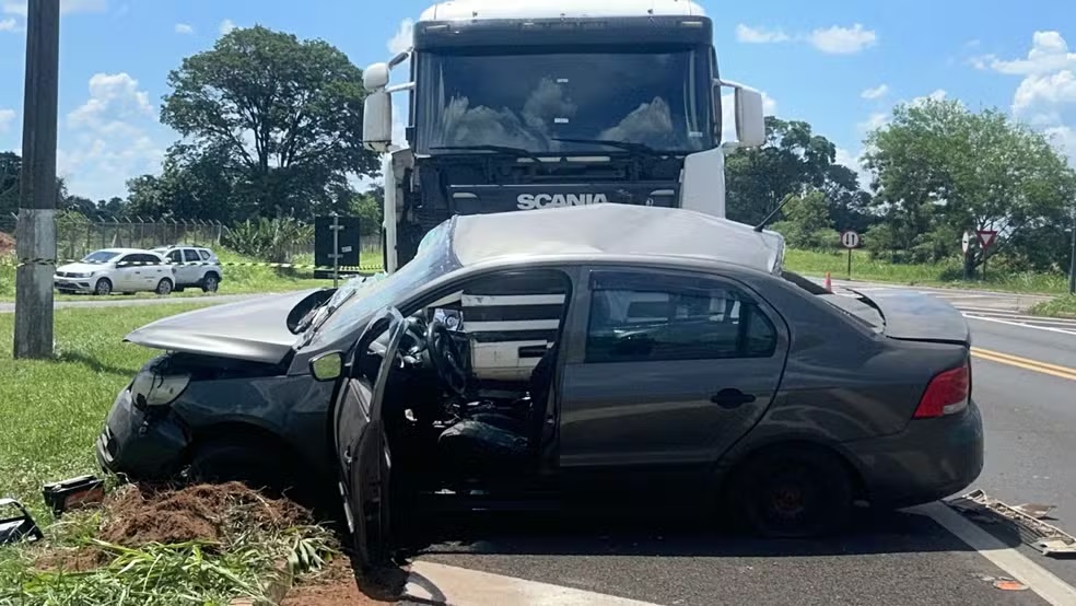 Segundo o Corpo de Bombeiros, as vítimas são um casal de idosos que estavam no carro que se envolveu em uma colisão transversal com uma carreta por volta das 11h10.
