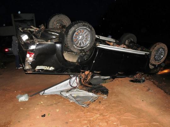 Toyota Hilux ficou com as rodas para cima após ser atingida na traseira por um Fiat Uno