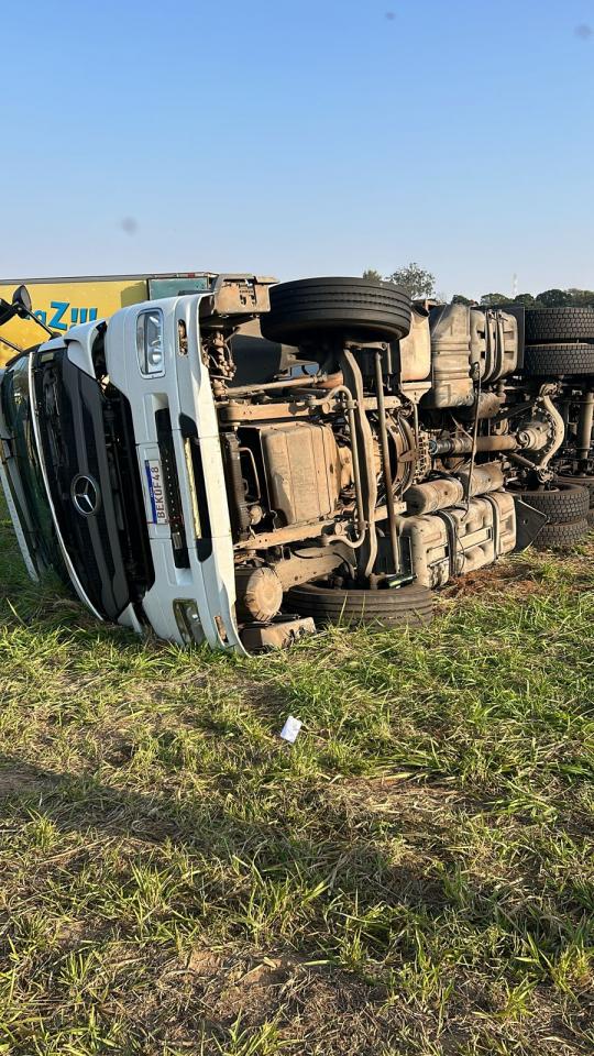Segundo informações preliminares, o caminhão teria perdido o controle e tombado no trecho em obras, espalhando a carga pela pista e bloqueando parcialmente a rodovia. Equipes de resgate e manutenção foram acionadas para realizar a remoção do veículo e a limpeza da pista, além de avaliar possíveis danos à estrutura da rodovia.