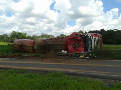 43154Caminhão carregado com óleo vegetal tomba em Parapuã