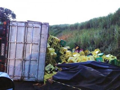 Conforme o motorista, poucas garrafas quebraram. "Acredito que vamos conseguir salvar cerca de 70% da carga".