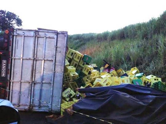 A pista não precisou ser interditada, pois a maior parte do veículo ficou no acostamento da via. A carga, formada por cerca de 1 mil engradados da bebida, calculada em aproximadamente 22 toneladas, também não ficou espalhada pela pista.