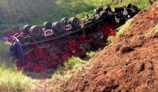 18920Caminhão com 14 mil garrafas de refrigerante despenca em Bilac
