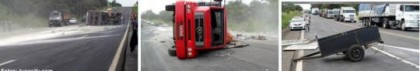 O acidente, segundo o motorista do caminhão Aristeu, foi provocado por uma carretinha que estava sendo rebocada por um Fiat/Siena.