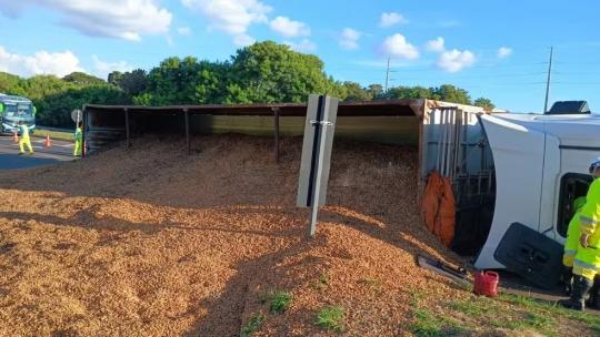O motorista da carreta seguiu por meios próprios, sem necessidade de guincho. O motorista não se feriu no tombamento.