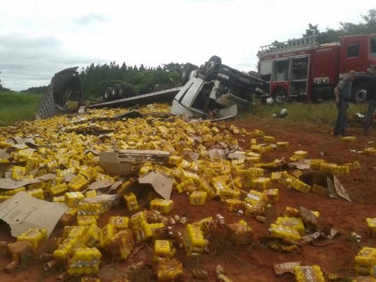 43578Carreta com carga de latas de cerveja tomba em rodovia de Assis