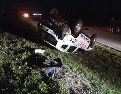 61631Carro bate em viatura da PM, que capota e deixa policiais feridos na Rodovia Raposo Tavares