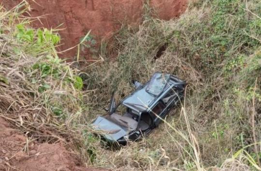 61687Carro com mãe e filha cai em ribanceira na SP-457, rodovia que liga Bastos a Iacri