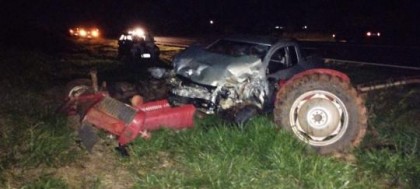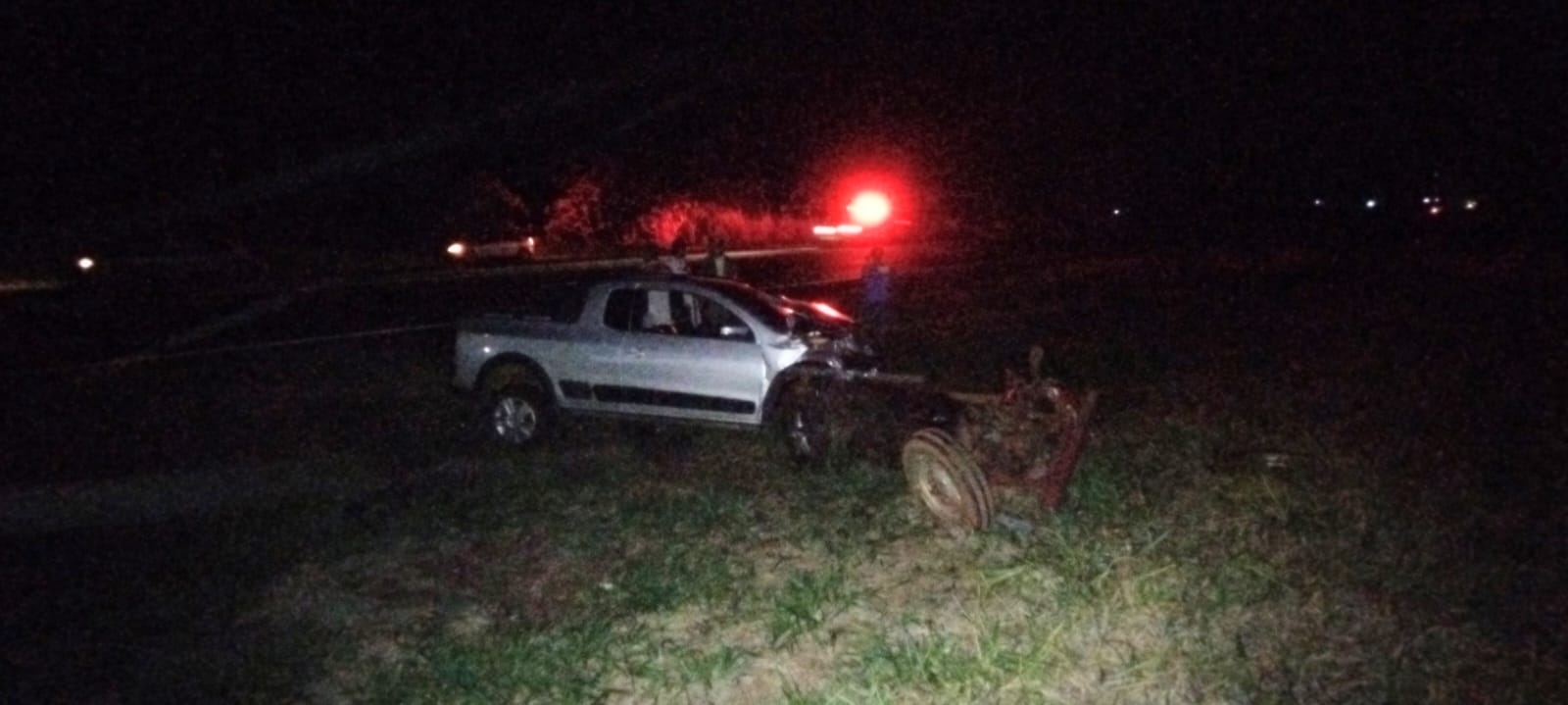 O motorista da picape e o condutor do trator sofreram ferimentos e foram conduzidos para atendimento médico na unidade de saúde da cidade.
