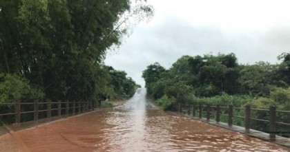 Novamente uma das pontes foi invadida pela água e o local exige cuidado por parte dos motoristas que trafegam pelo local.