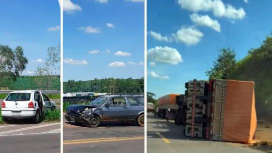 56991Colisão entre veículos e tombamento de carreta são registrados na SP-425 em Parapuã