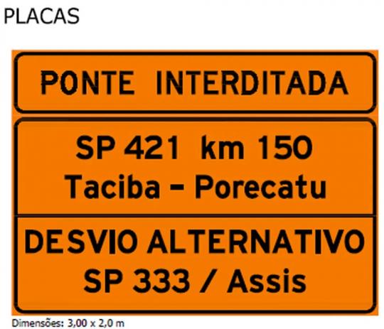 Ainda de acordo com o DER-SP, diversos pontos das rodovias próximas a ponte estarão sinalizados. Serão implantadas sinalização vertical, com intuito de alertar os motoristas sobre as interdições na ponte entre Taciba (SP) e Porecatu (PR).
