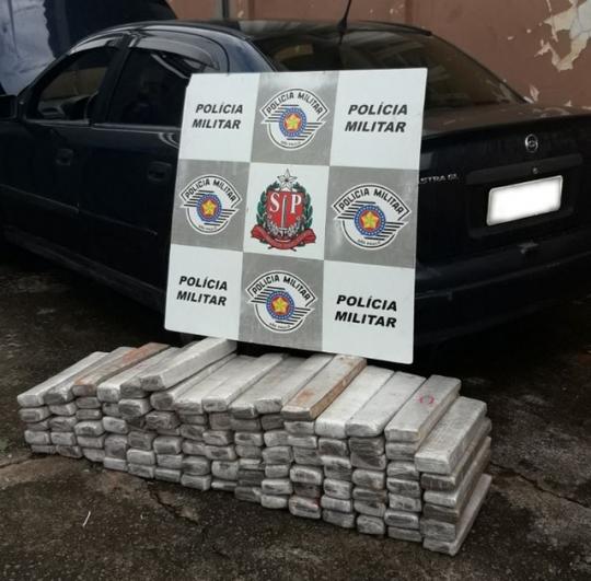 Com a dupla, nada ilícito foi localizado. Entretanto, ao ser questionado, o passageiro declarou que no porta-malas do veículo havia droga. Ao verificar a informação, os militares localizaram dois sacos de nylon que continham o total de 94 tabletes de maconha embalados em fita plástica transparente.