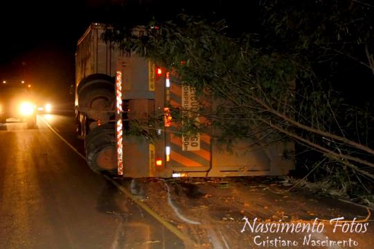 30669Eixo quebra e caminhão canavieiro tomba na vicinal Luiz Rovina: veja as imagens