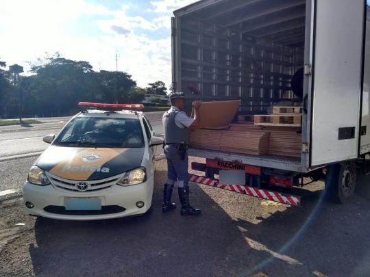 Lâminas de alumínio para impressão gráfica eram levadas em caminhão e foram apreendidas, enquanto que o motorista acabou liberado