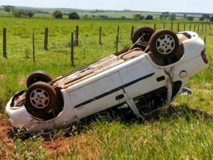 REGIONAL - Um corsa com placas de Flórida Paulista capotou por volta das 13h, na Rodovia Comandante João Ribeiro de Barros, no km 676 +700, próximo ao trevo de Santa Mercedes.
