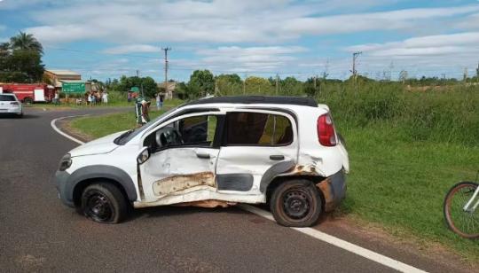 Um carro tentou cruzar a rodovia pelo trevo da cidade sem perceber outro veículo que seguia no sentido oeste, causando a batida.