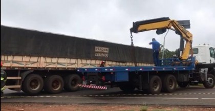 Perícia foi até o local e um guincho foi acionado para retirar o caminhão da via