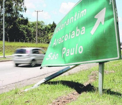 16985Motorista bate contra placa de sinalização em Pacaembu