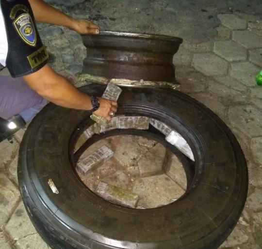 42183Motorista é preso com mais de 100 tabletes de maconha dentro de pneus