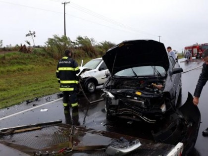 45467Motorista perde controle do carro e bate de frente com picape em rodovia