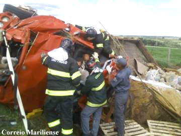 MARÍLIA- O motorista G.J. dos R., 56, trafegava com um caminhão pela SP-294, sentido Vera Cruz-Garça, por volta das 14h de sábado, dia 24, quando no quilômetro 429, perdeu o controle e capotou em direção ao acostamento. Ele conduzia um caminhão vermelho, placas de Poços de Caldas-MG, carregado com sacos de cimento.