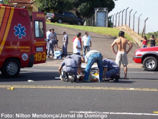 Ela foi colhida por uma motocicleta Yamaha, de cor azul, placa de Tupã, cujo condutor também se feriu