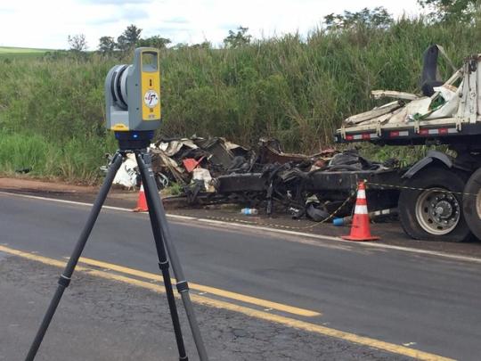 Para a realização do trabalho, o tráfego de veículos foi interrompido nos dois sentidos da rodovia por cerca de meia hora. A equipe utilizou um escâner em 3D. O equipamento foi recém-adquirido pelo Instituto de Criminalística e faz o mapeamento da cena total do acidente.