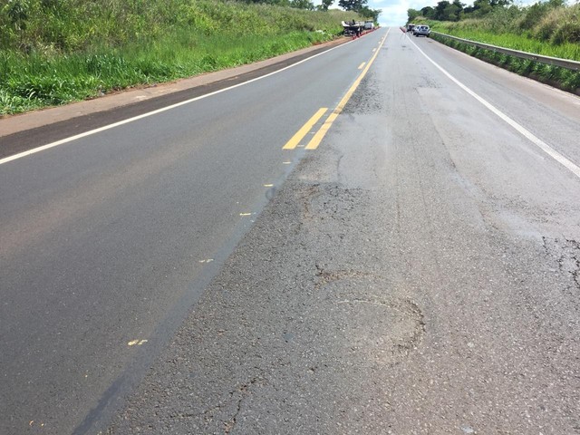 O trecho da rodovia é de pista simples e havia marcas no asfalto que podem ter sido provocadas pelo pneu apontado como causador do acidente.
